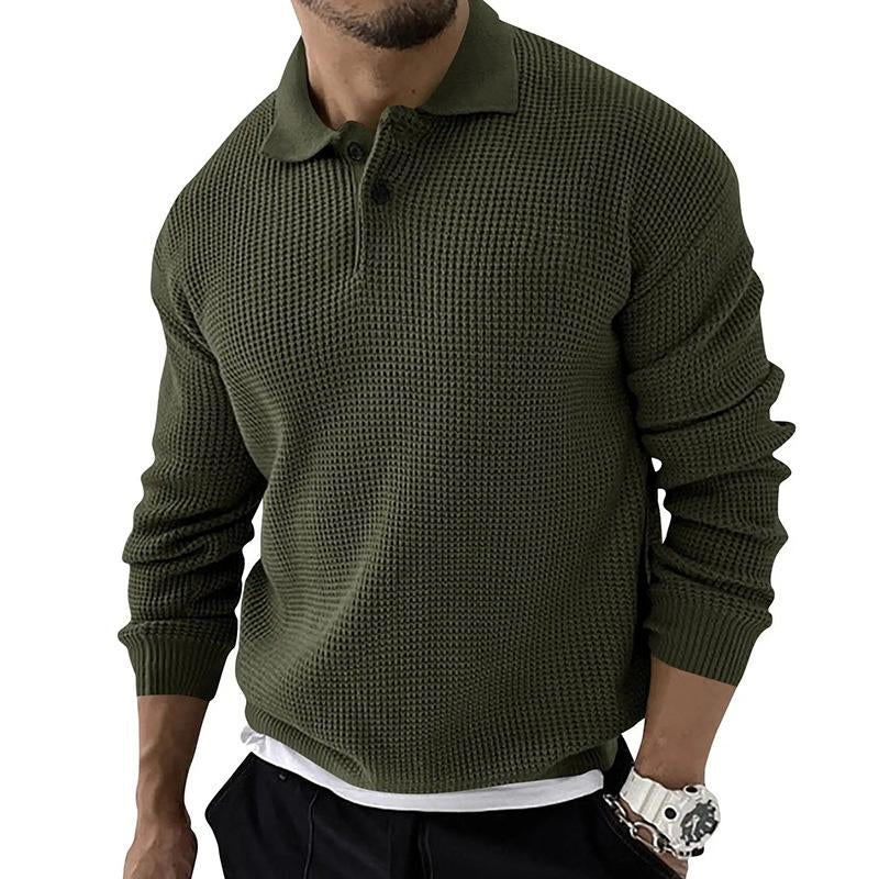 Built from high quality knit material, the men’s lapel lapel knit button pullover is soft to touch and comfortable to wear. Two-button placket and a layerable fit provide maximum versatility. Traditional waffle knit design shows a classic look. The dropped shoulder gives an easy, casual look, and makes for a soft shape over the shoulder.