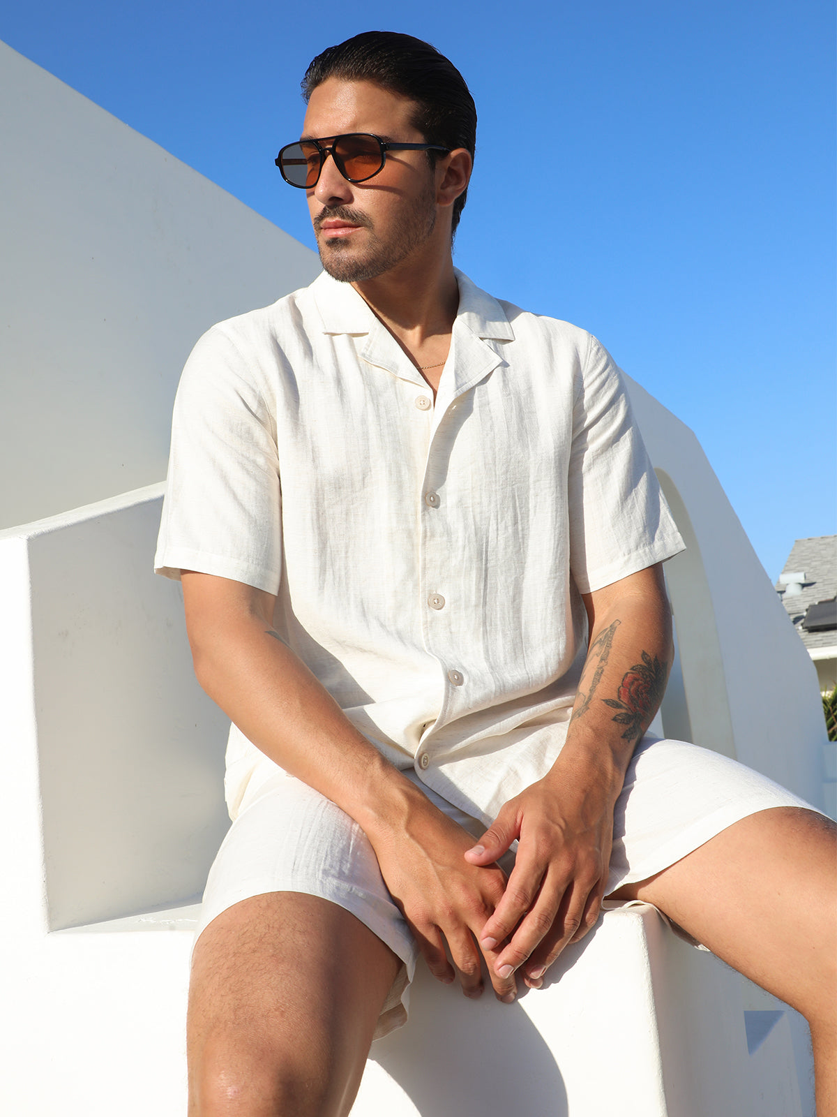 Experience the ultimate comfort of the Havana Shirt, meticulously crafted from a luxurious blend of linen fabric. Its on-trend design is specifically tailored to accentuate the muscular physique, instantly capturing attention. With a Cuban collar style that adds a touch of sophistication and reinforced seams for long-lasting durability, this shirt guarantees an effortlessly captivating and eye-catching appearance.