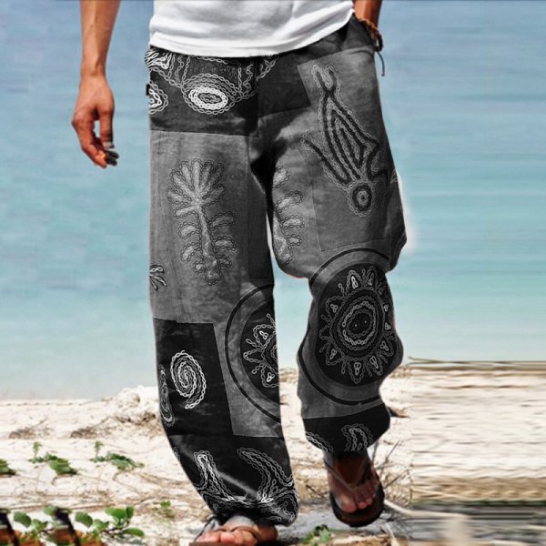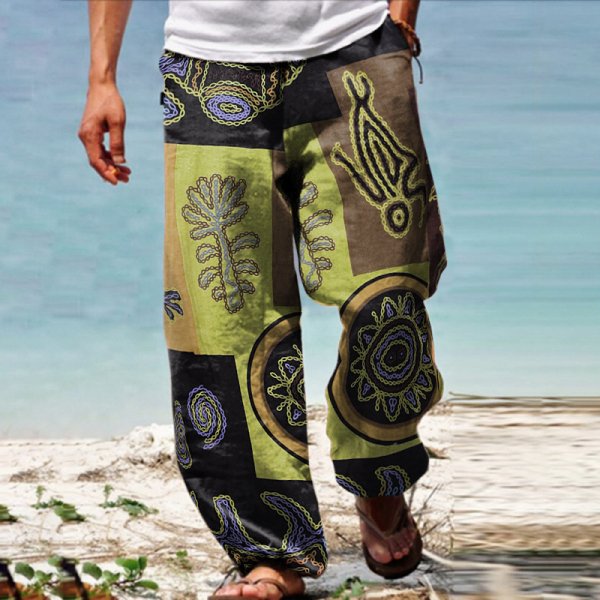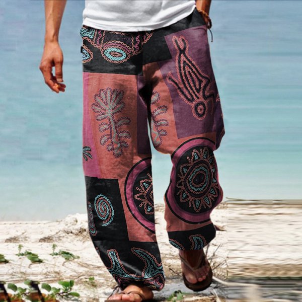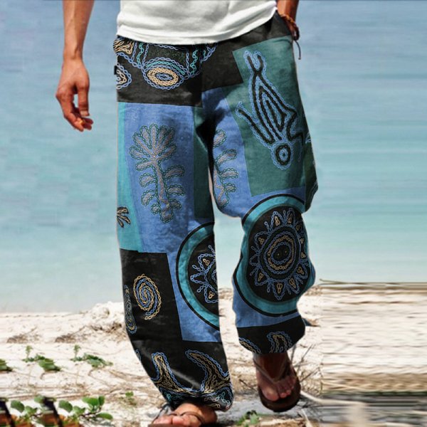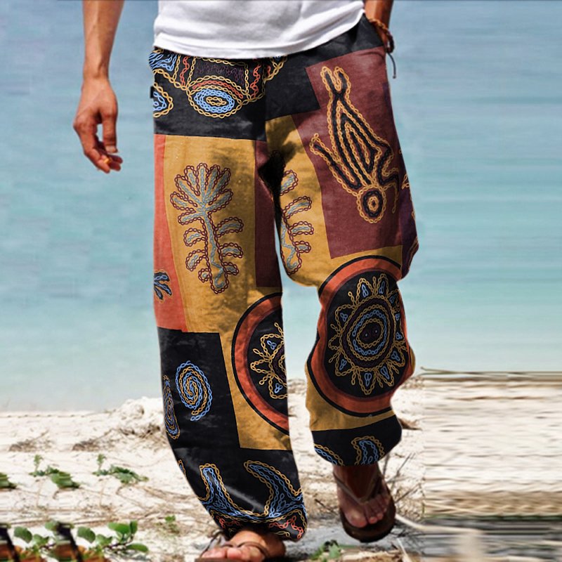 Linen Western Ethnic Irregular Boho Print Double Pocket Stretch Loose Pants