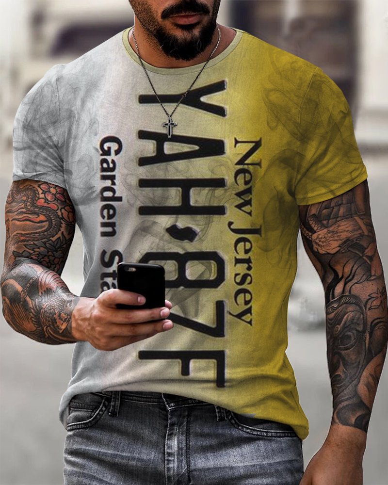 Nj License Plate Print Casual T-Shirt