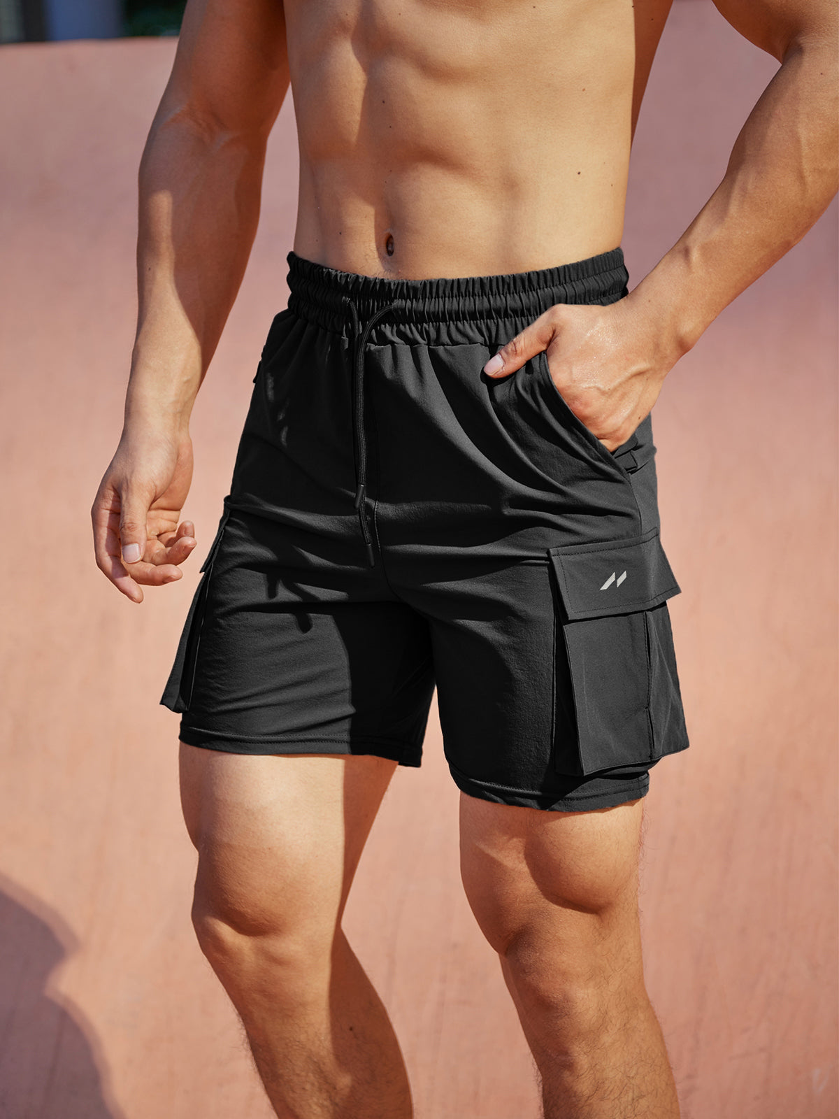 Unleash your athletic prowess with this versatile lightweight cargo short. It's the ultimate all-rounder for athletes, combining technical functionality with a stylish edge. Featuring Velcro closure cargo pockets, an elastic waistband with drawcord, and a stay-cool polyester spandex fabrication, it's designed to keep you comfortable and cool while nailing that athletic look.