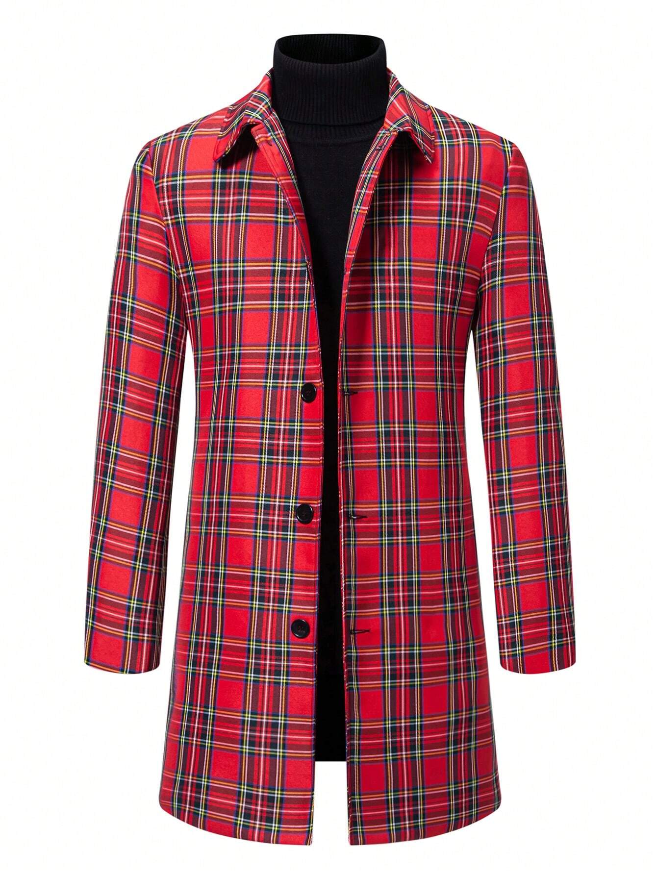 Plaid Woolen Long Sleeve Coat