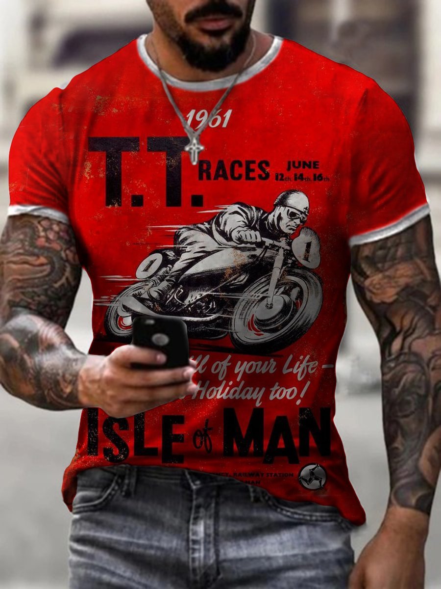Mens Fashion Vintage Motor Oil Printed T-Shirt
