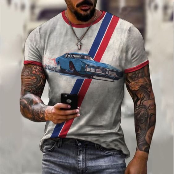 Mens Fashion Vintage Motor Oil Printed T-Shirt
