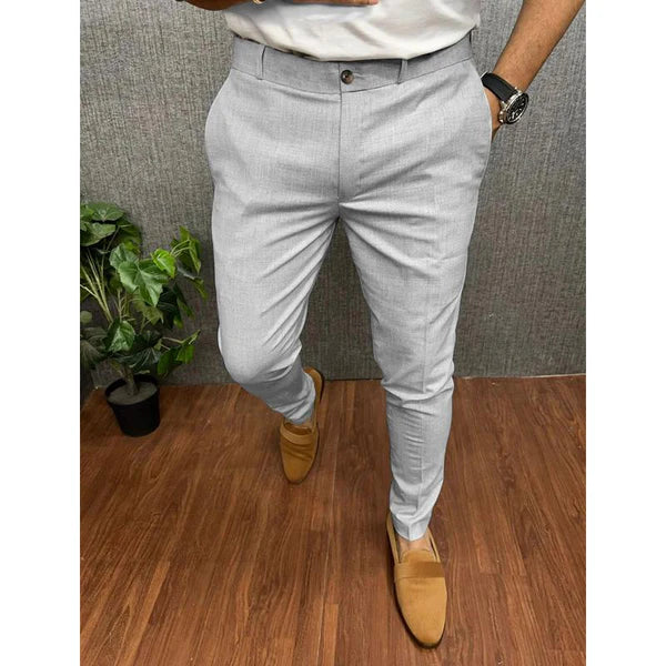 Elevate your wardrobe with these versatile and stylish solid color casual slim straight pants, perfect for adding a touch of sophistication to your everyday look.