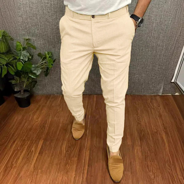 Styling: Pair these casual slim straight pants with a tucked-in button-down shirt or a casual polo for a smart-casual look. They can be dressed up with a blazer for a more formal occasion or dressed down with a simple t-shirt for a relaxed vibe.