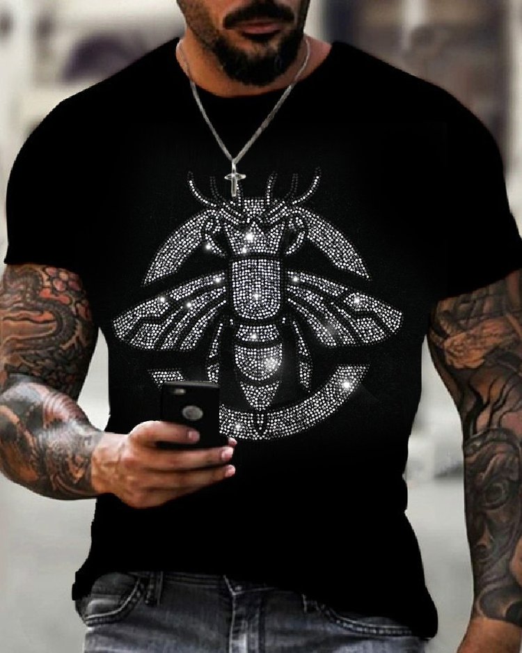 Stylish Casual Black Rhinestone T-Shirt
