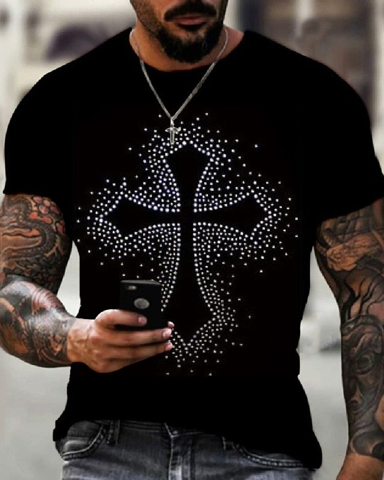 Stylish Casual Black Rhinestone T-Shirt