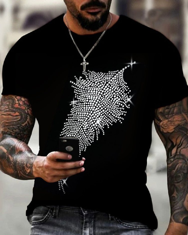 Stylish Casual Black Rhinestone T-Shirt