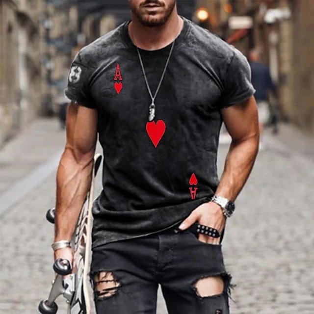T shirt Tee 3D Print Graphic Prints Poker Crew Neck Street Casual 3D Print Short Sleeve Tops Fashion Breathable Comfortable Black