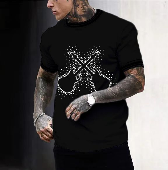 T-shirt Tee Cool Double Guitar Beads Crew Neck Cool Black 3D Print Outdoor Street Short Sleeve Print Clothing Apparel Basic Sports Designer Casual