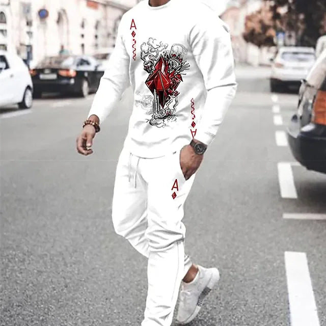 Tracksuit Hoodies Set Crew Neck Graphic Poker 2 Piece