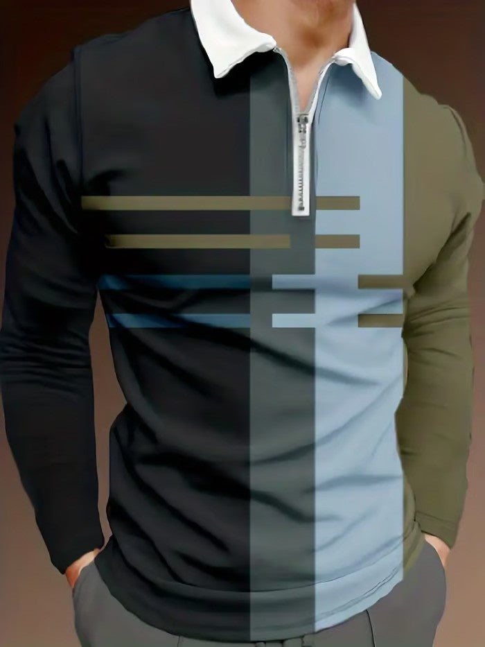 Trendy Business Striped Zipper Polo Shirt