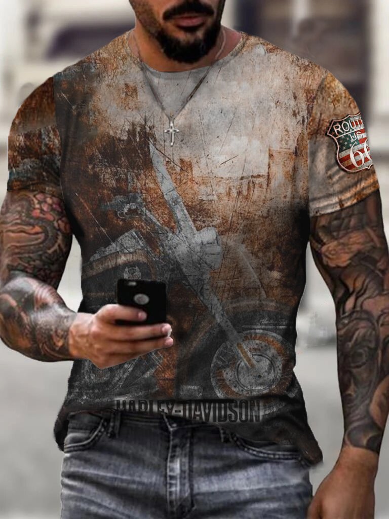 Fashion Motorcycle Print Casual T-Shirt