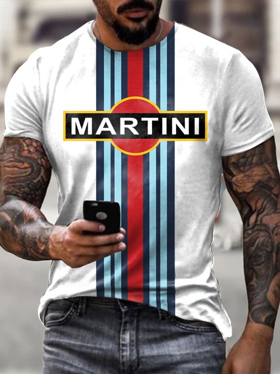 Mens Vintage Motor Martini Oil Badge Printed T-Shirt