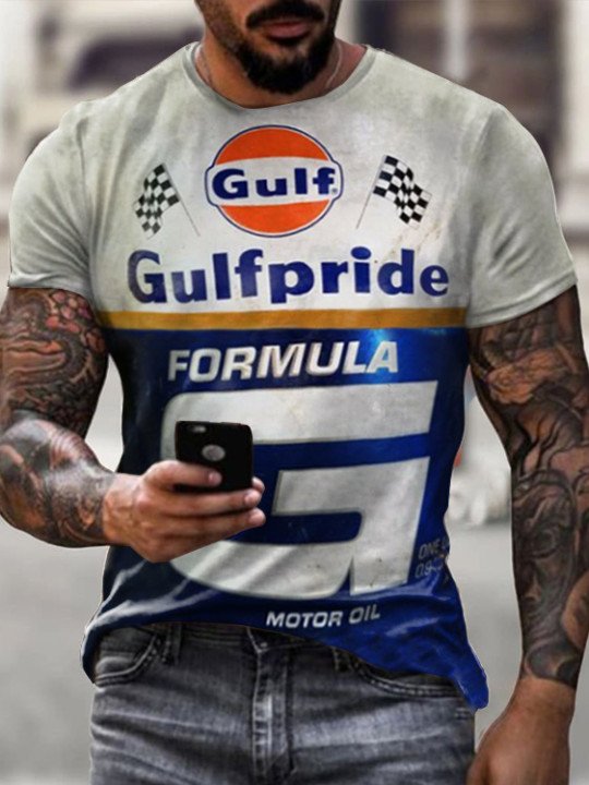 Mens Fashion Vintage Motor Oil Printed T-Shirt