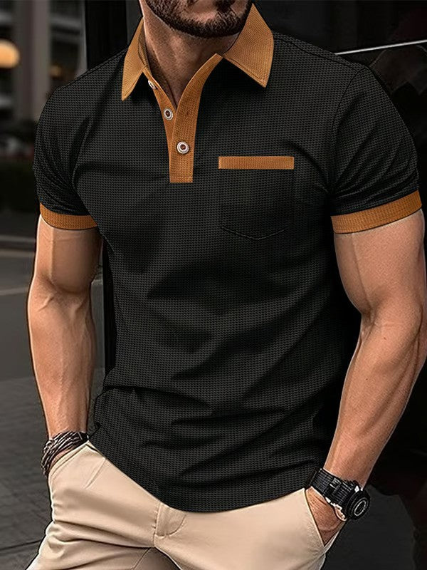 Waffle Fabric Fashion Casual Polo Shirt (With Pockets)
