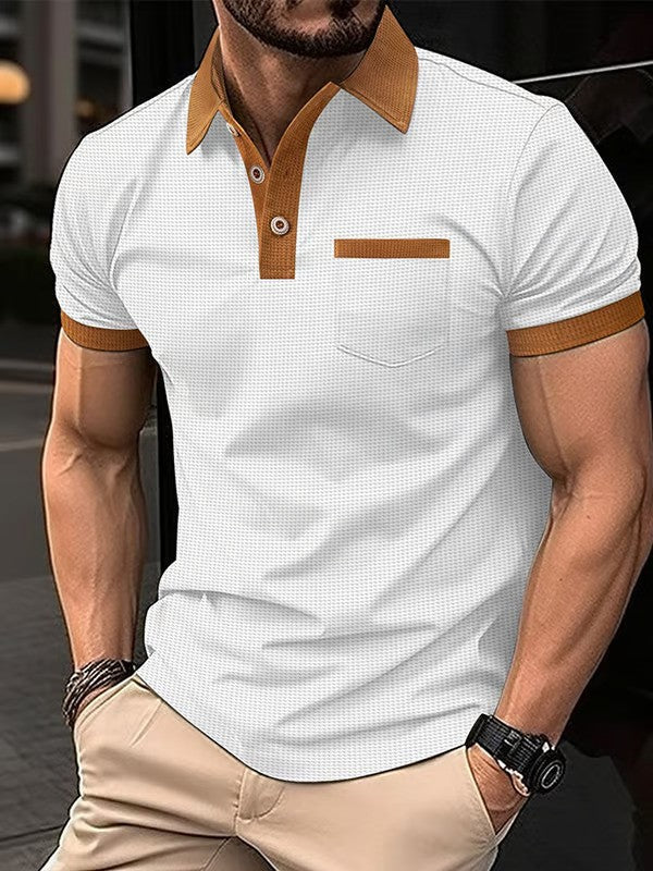 Casual Color Block Pocket Short Sleeve Polo Shirt