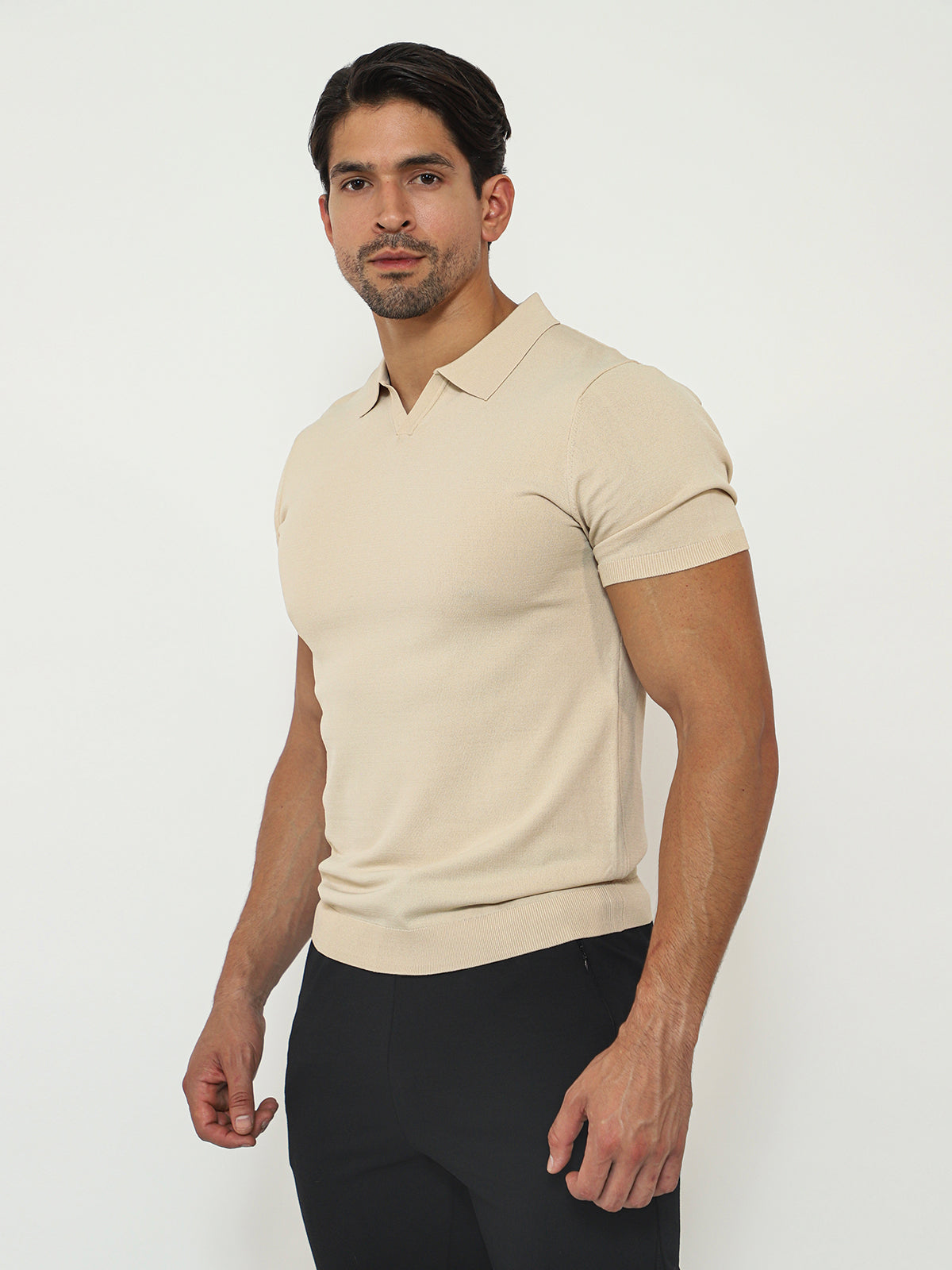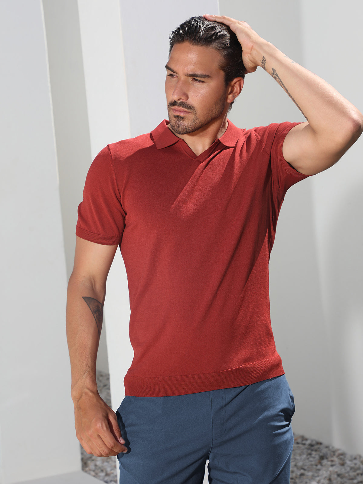 The AHA Open Collar Polo Shirt is a modern, lightweight knit top with short sleeves. Crafted from a soft, comfortable fabric, it provides a relaxed, casual feel. The open collar design gives it a clean, polished look that pairs easily with a variety of bottoms. Whether for everyday casual wear or more formal settings, this polo shirt allows you to effortlessly achieve different stylish looks. Its tailored silhouette creates a fashionable, elevated appearance, exuding a high-quality aesthetic. Whether for yourself or as a gift, this piece is sure to be a versatile, go-to wardrobe staple..