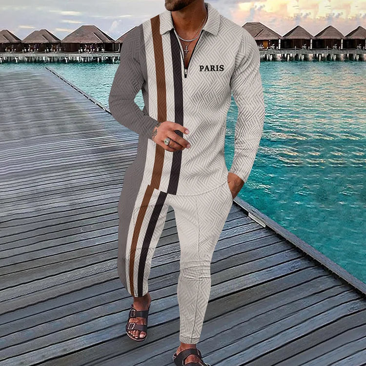 Zipper Long Sleeve Long Pants Two-Piece Set