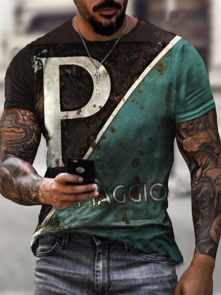 Mens Fashion Vintage Motor Oil Printed T-Shirt