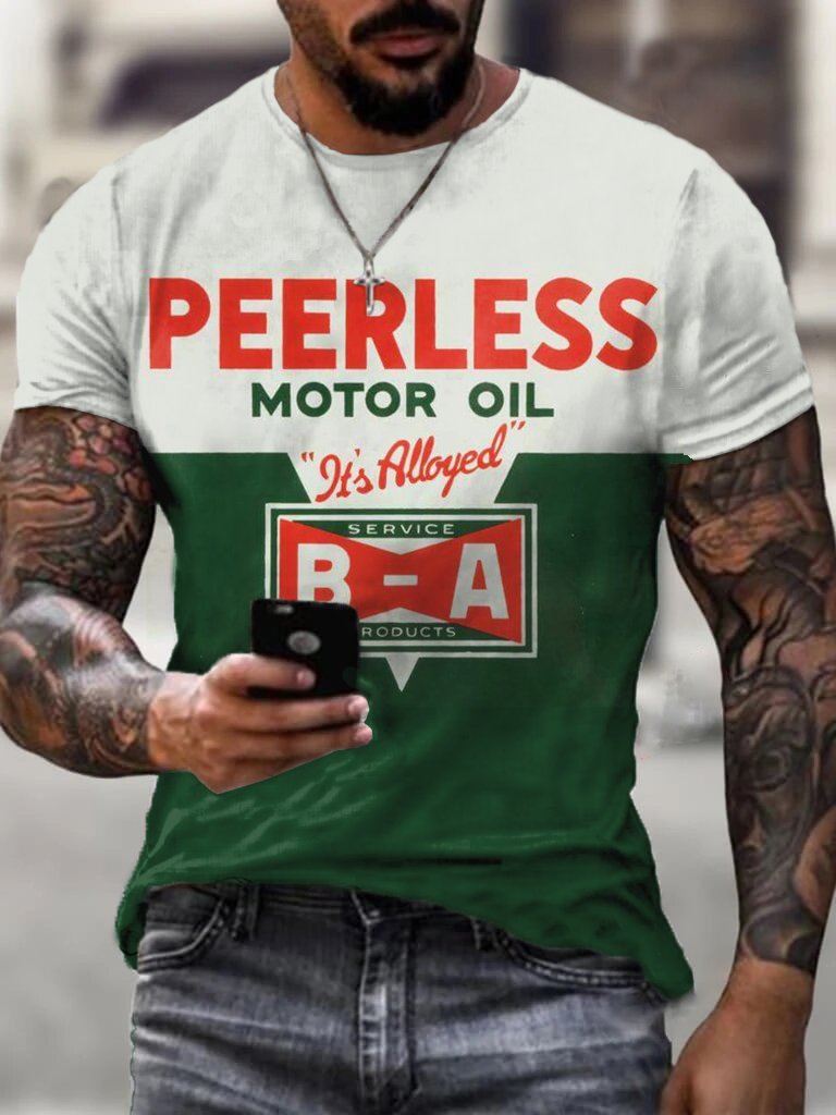 Mens Fashion Vintage Motor Oil Printed T-Shirt
