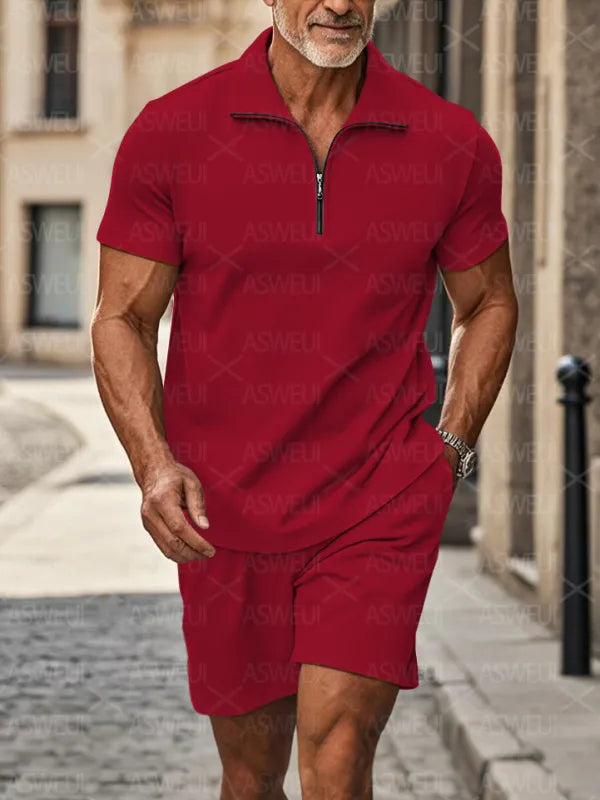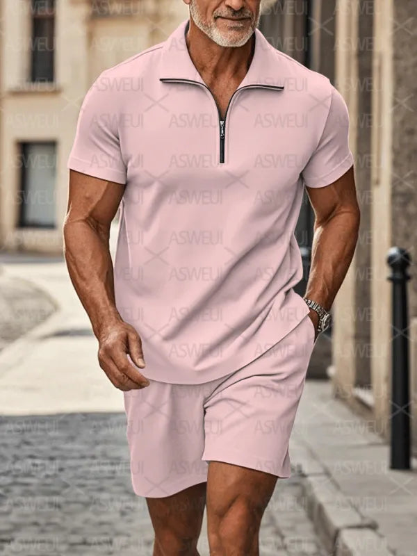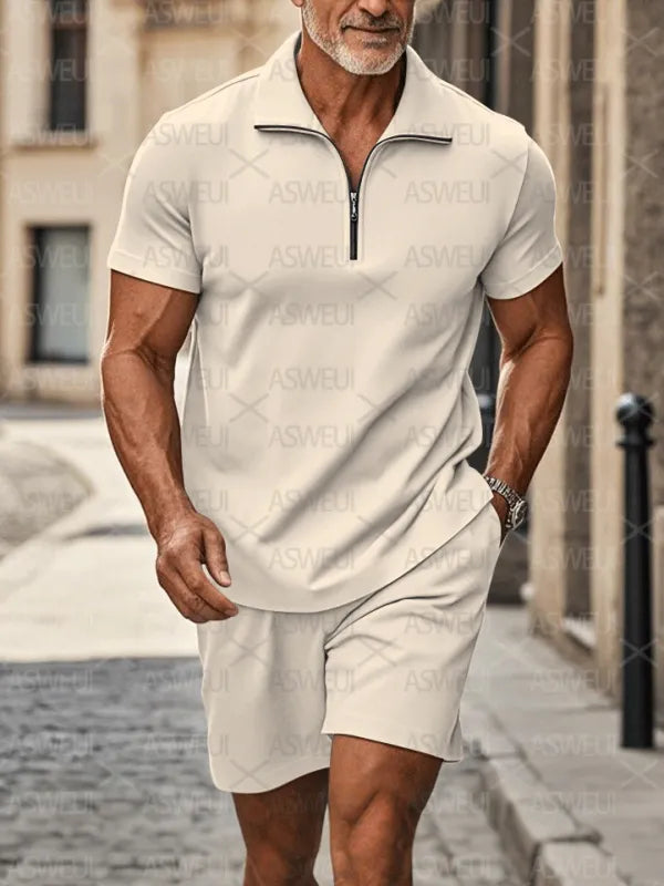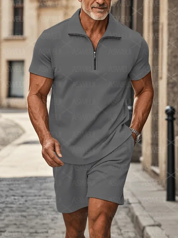 This men's casual two-piece set is the perfect combination of comfort and style, designed for the warmer seasons of spring and summer. Made from a high-quality blend of 100% cotton and polyester, the fabric ensures a soft feel while being breathable and durable for all-day wear. Featuring a bold geometric print, this set offers a unique, modern look that stands out in any casual or sporty setting. The round-neck design and short sleeves provide a relaxed and comfortable fit, ideal for various occasions like casual outings, sports, or weekend get-togethers.