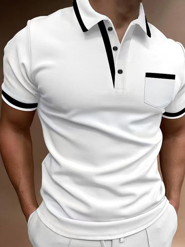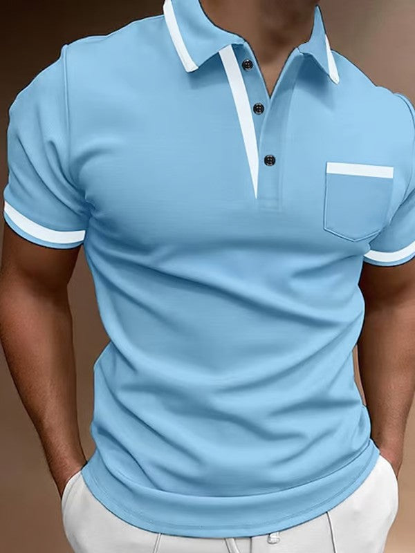 Casual Color Block Pocket Short Sleeve Polo Shirt