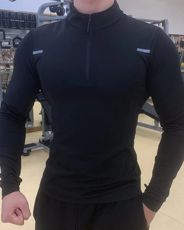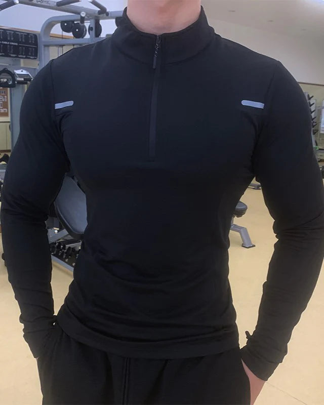 Elevate your active lifestyle with our sleek Reflective Performance Quarter-Zip, designed for those who demand both style and functionality in their athletic wear. The soft, breathable material ensures all-day comfort, whether you're breaking a sweat or running errands. The quarter-zip feature allows for quick ventilation when you need it, while the stand-up collar offers protection against wind and sun. Thoughtfully placed reflective details enhance your safety during early morning or evening workouts.