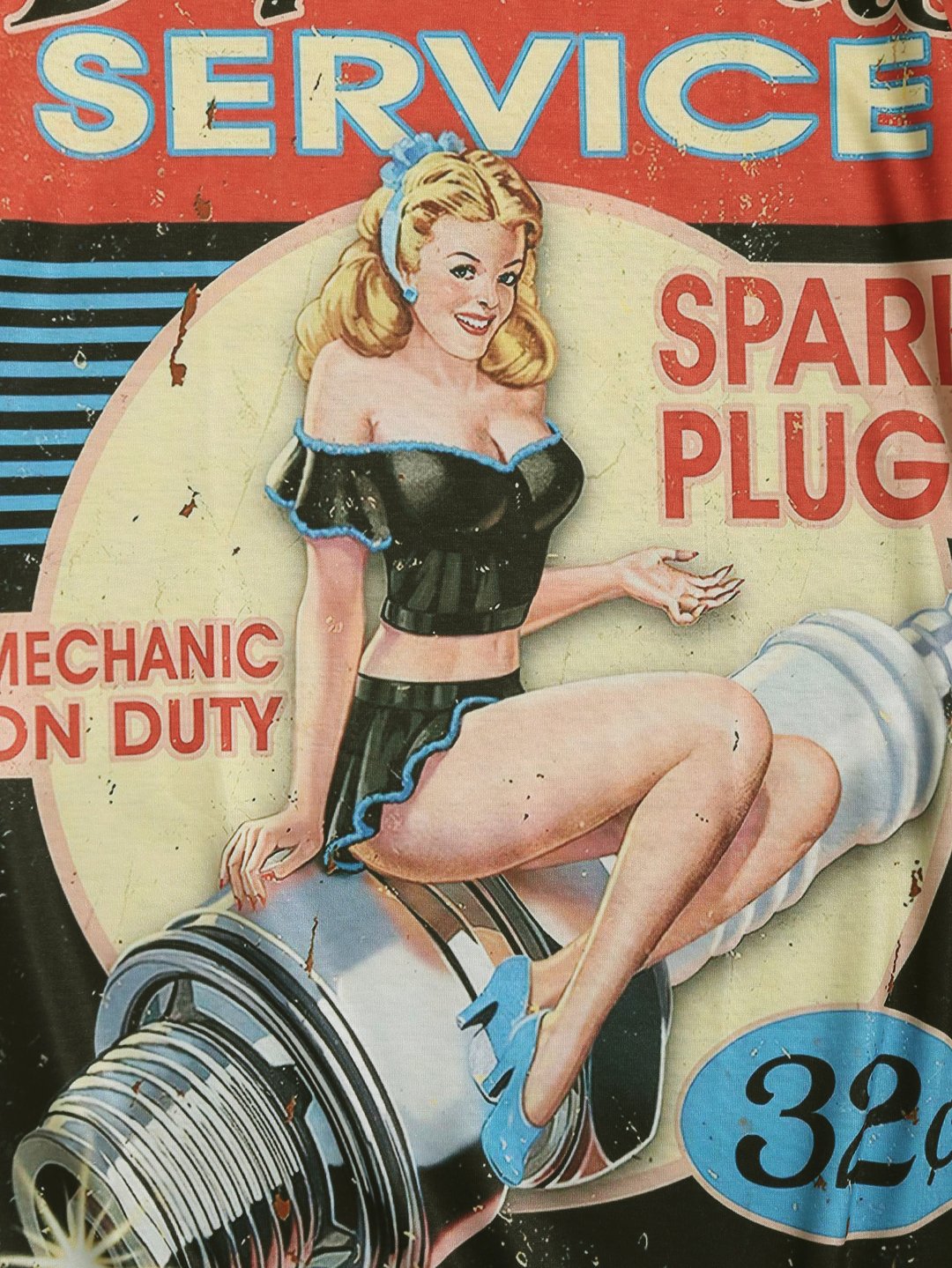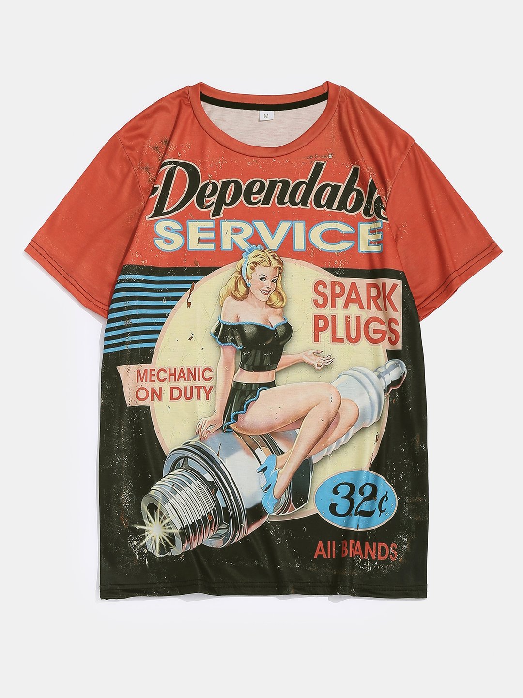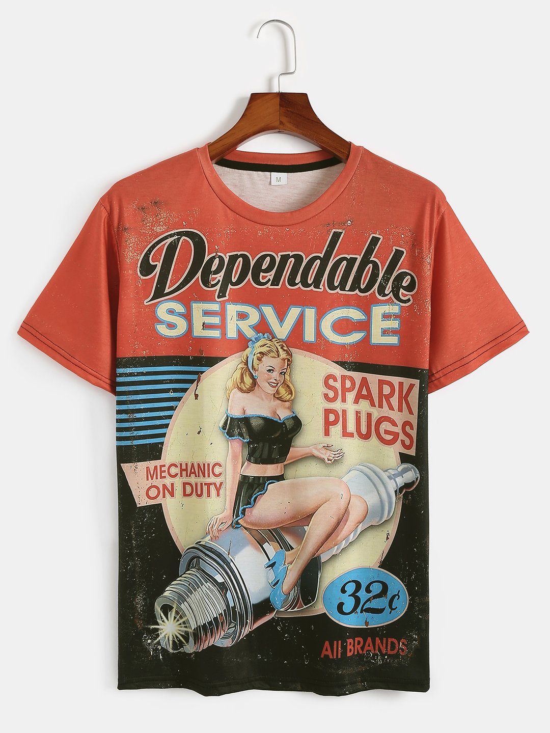 Mens Fashion Vintage Motor Oil Printed T-Shirt