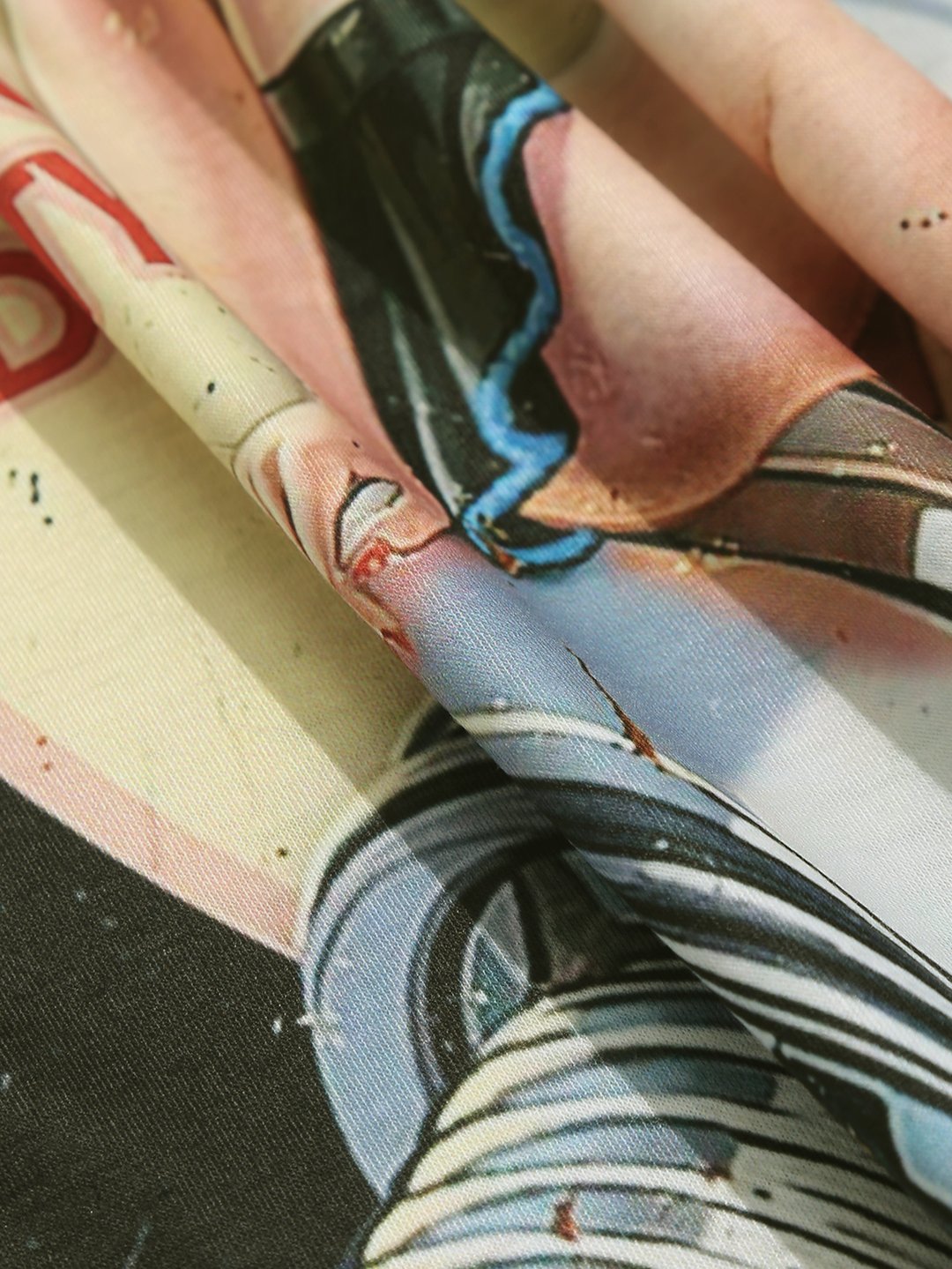 Shell Retro Casual Engine Oil Print Sweatshirt Set