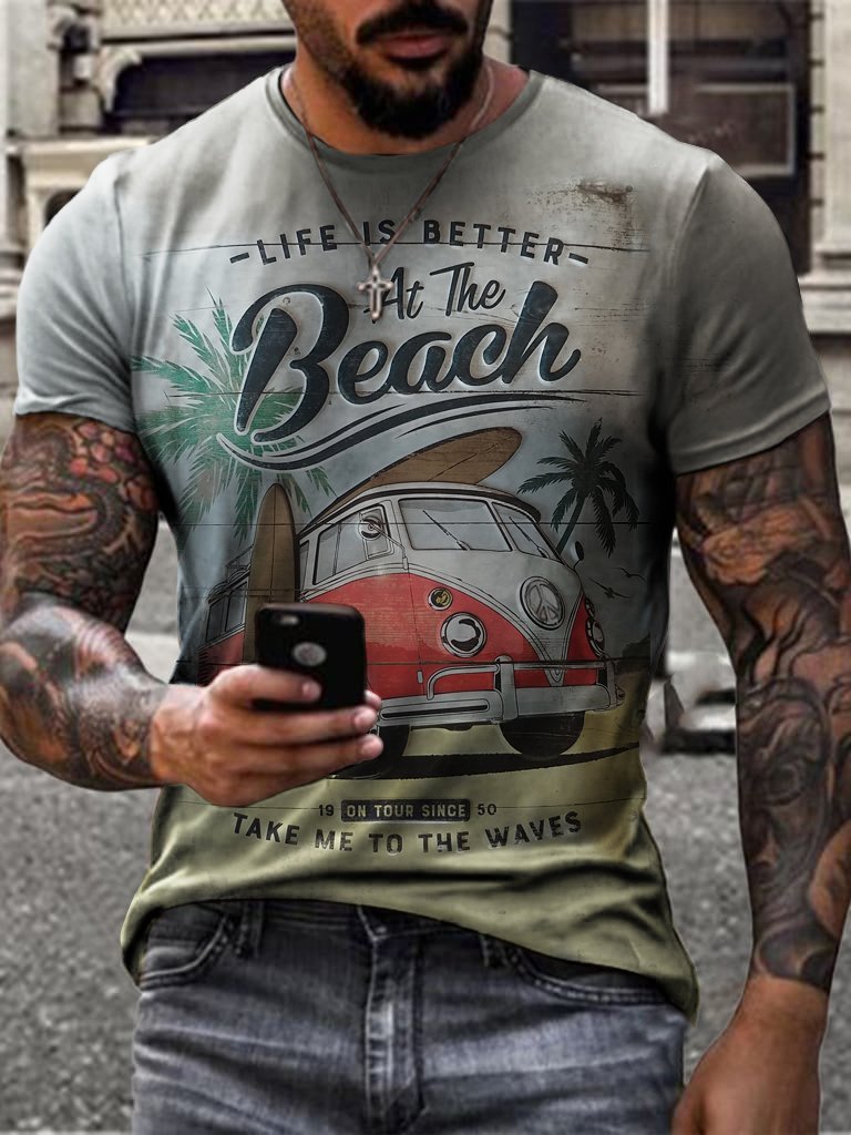 Mens Vintage Comfort Breathable Print T-Shirt