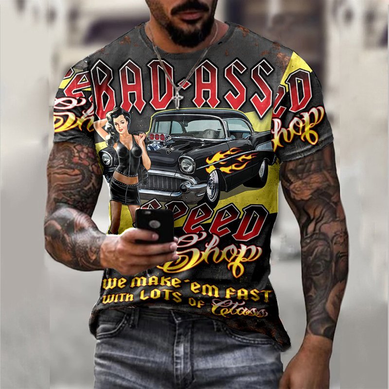 Mens Fashion Vintage Motor Oil Printed T-Shirt