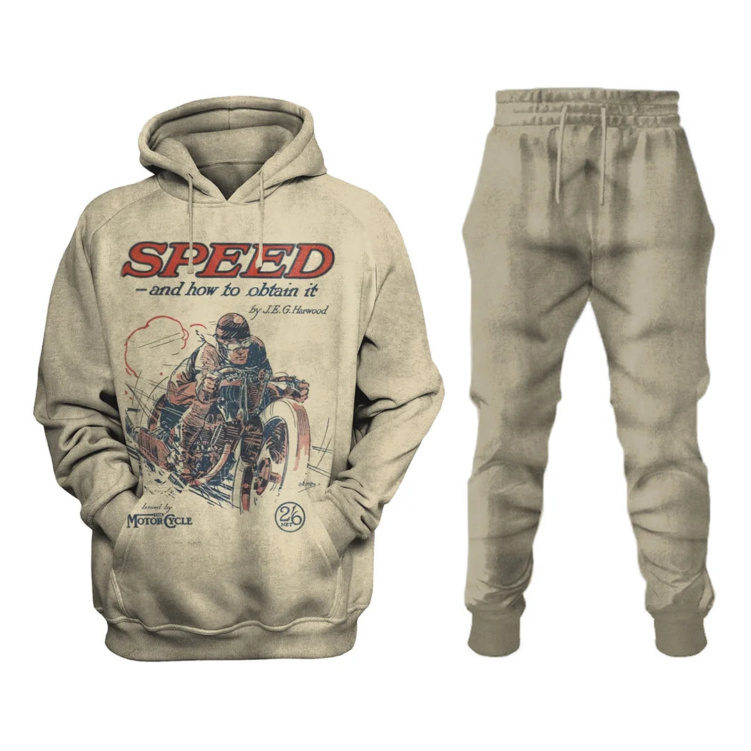 Speed Mens Retro Motorcycle Riding Printed Sweatshirt Set