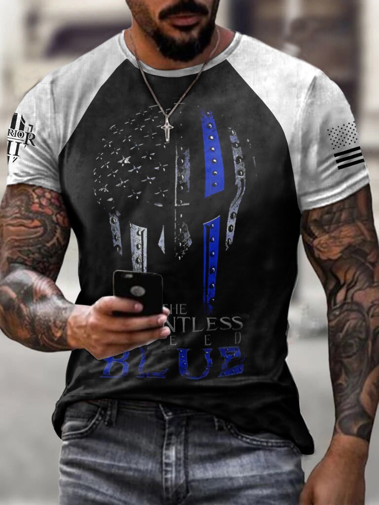 Splicing Thin Blue Line Skull Patriotic Printed Tee