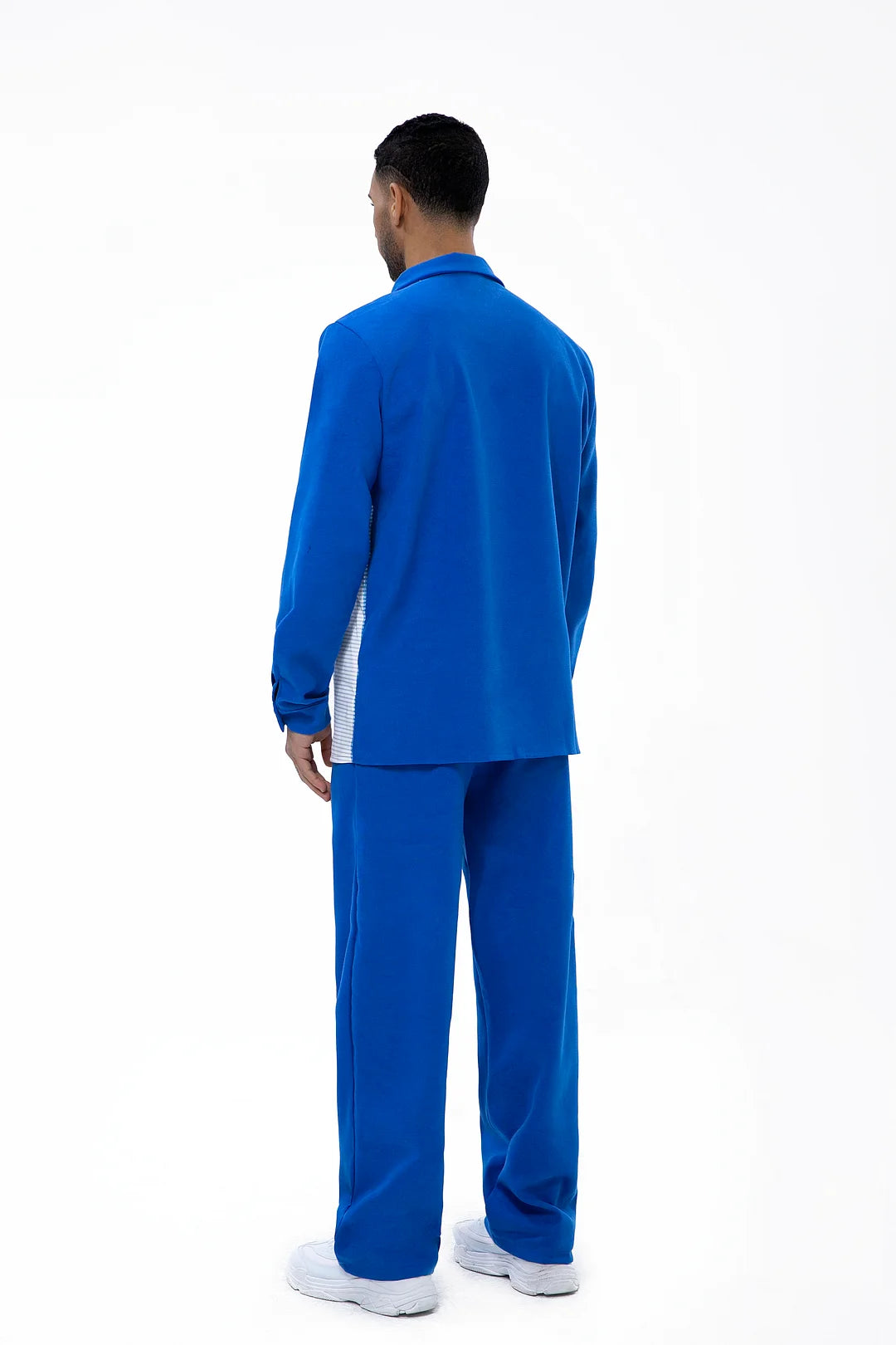 Long Sleeve Trousers Blue Suede Two-Piece Walking Set