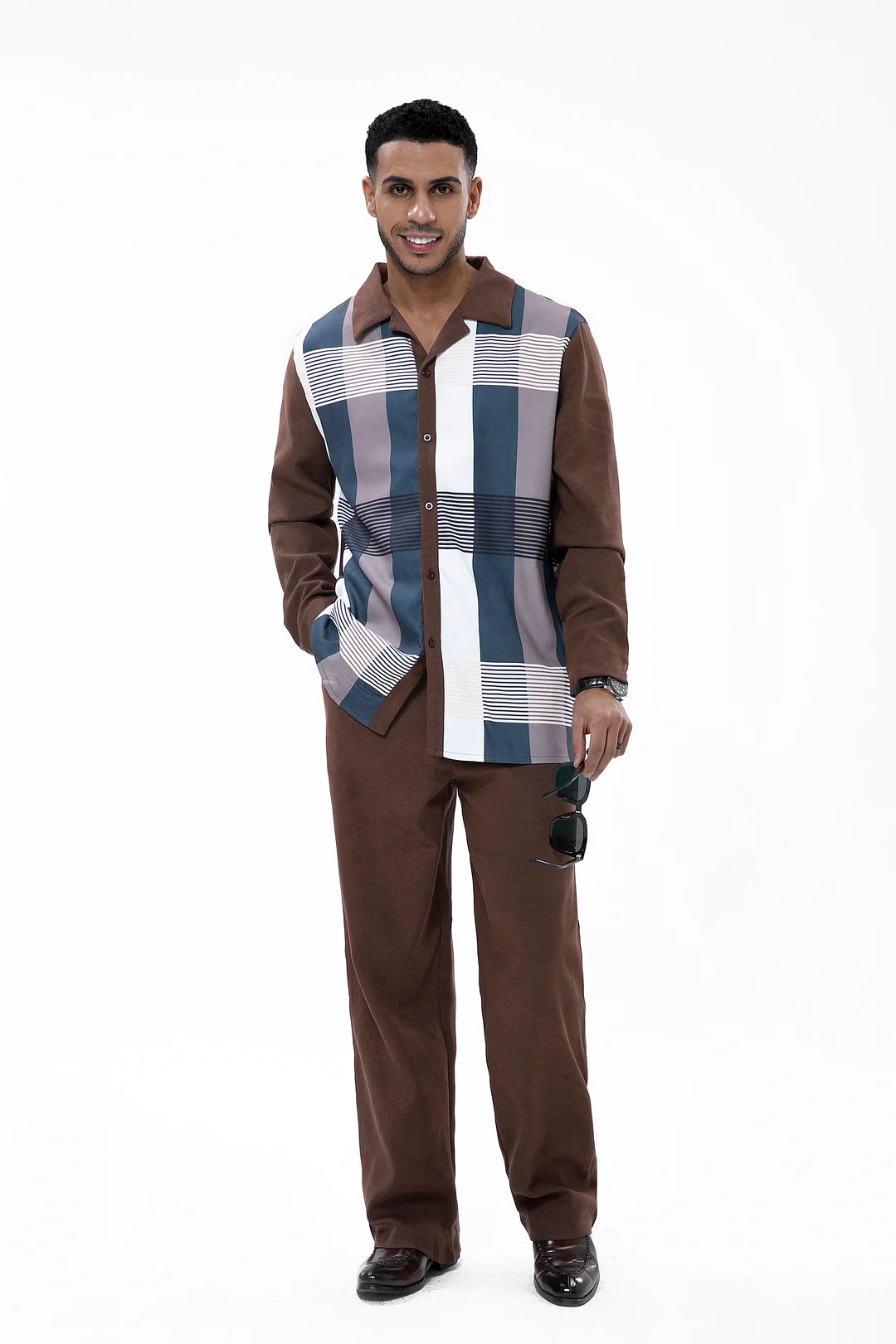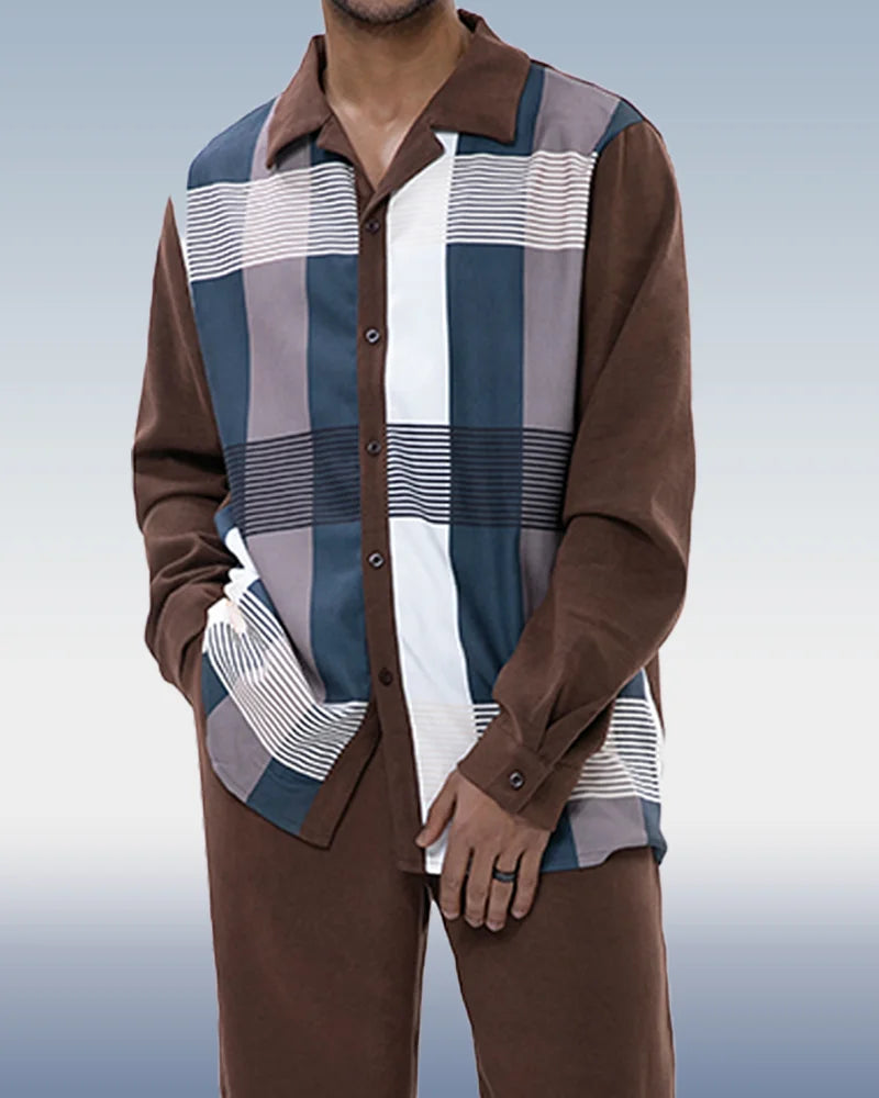 Brown Suede Long Sleeve Walking Suit 027