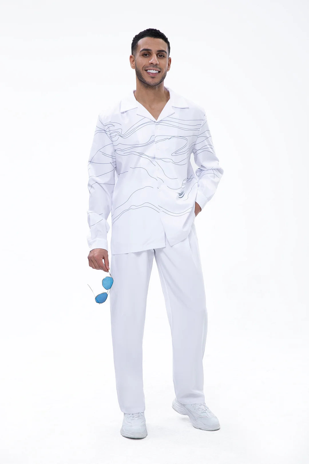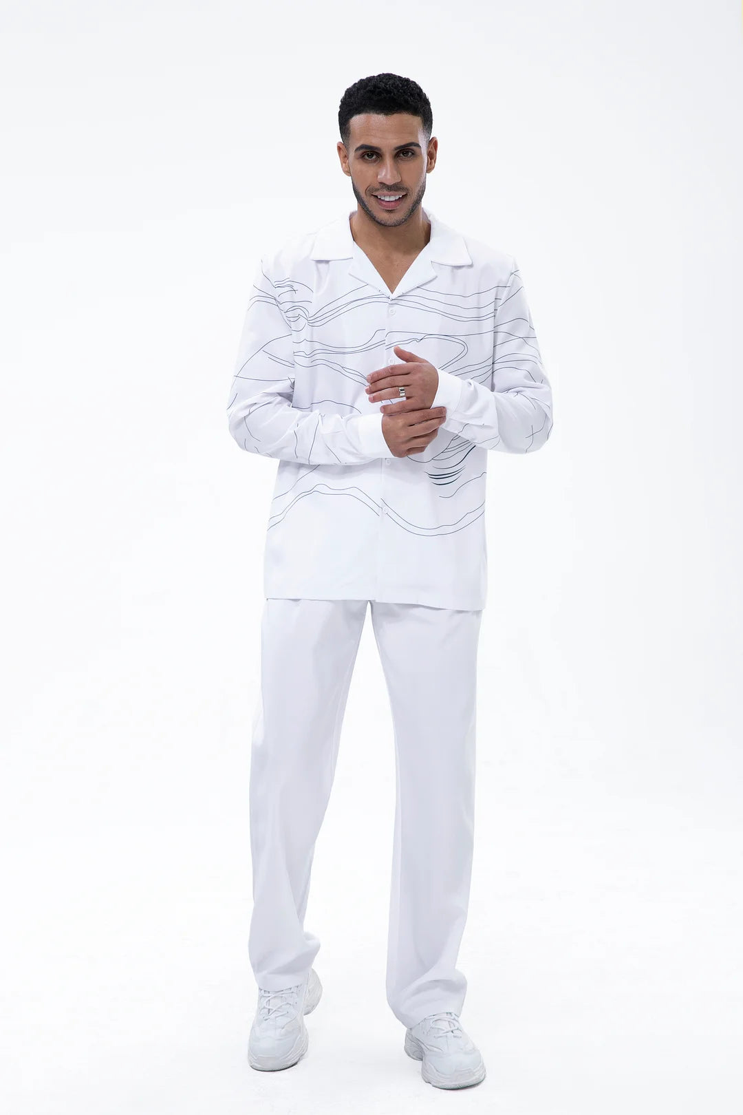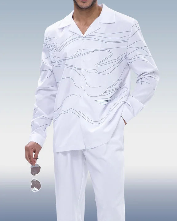 White Art Two-Piece Long Sleeve Print Walking Pants