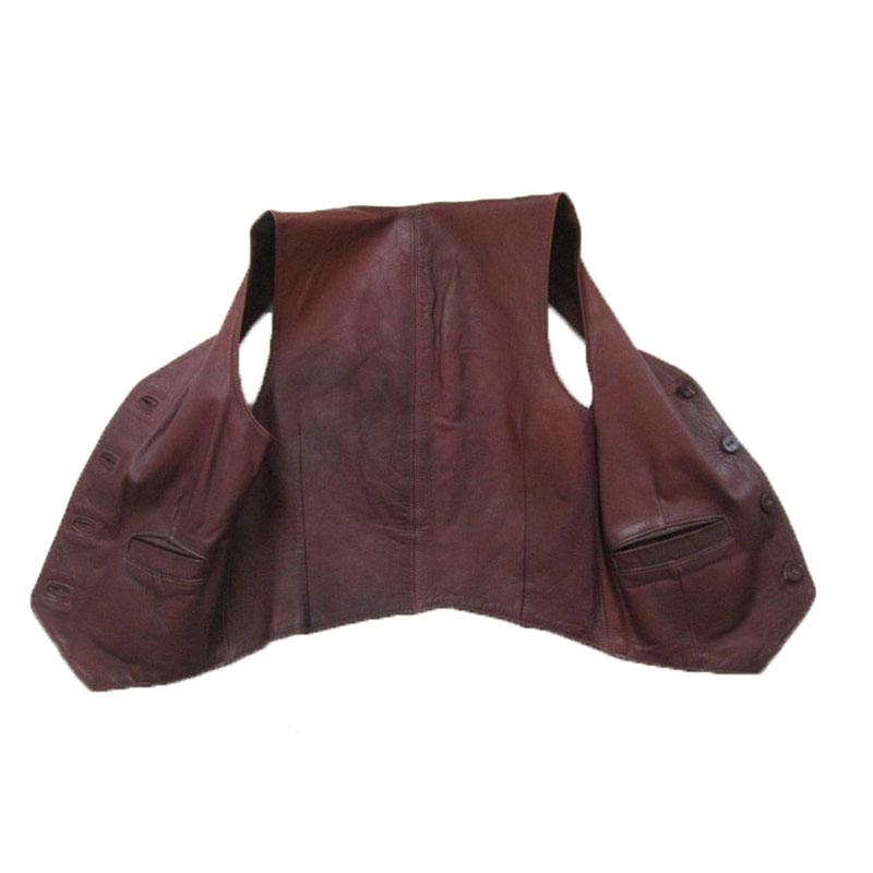 1960s-70s vintage men's chestnut brown custom leather vest, hand-crafted by Leathering Heights of Provincetown, Massachusetts. Features include front slit pockets and four leather buttons. Very good to excellent condition: no major flaws, just authentic distress from wear.