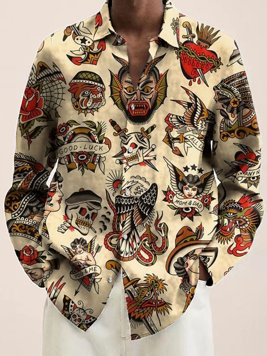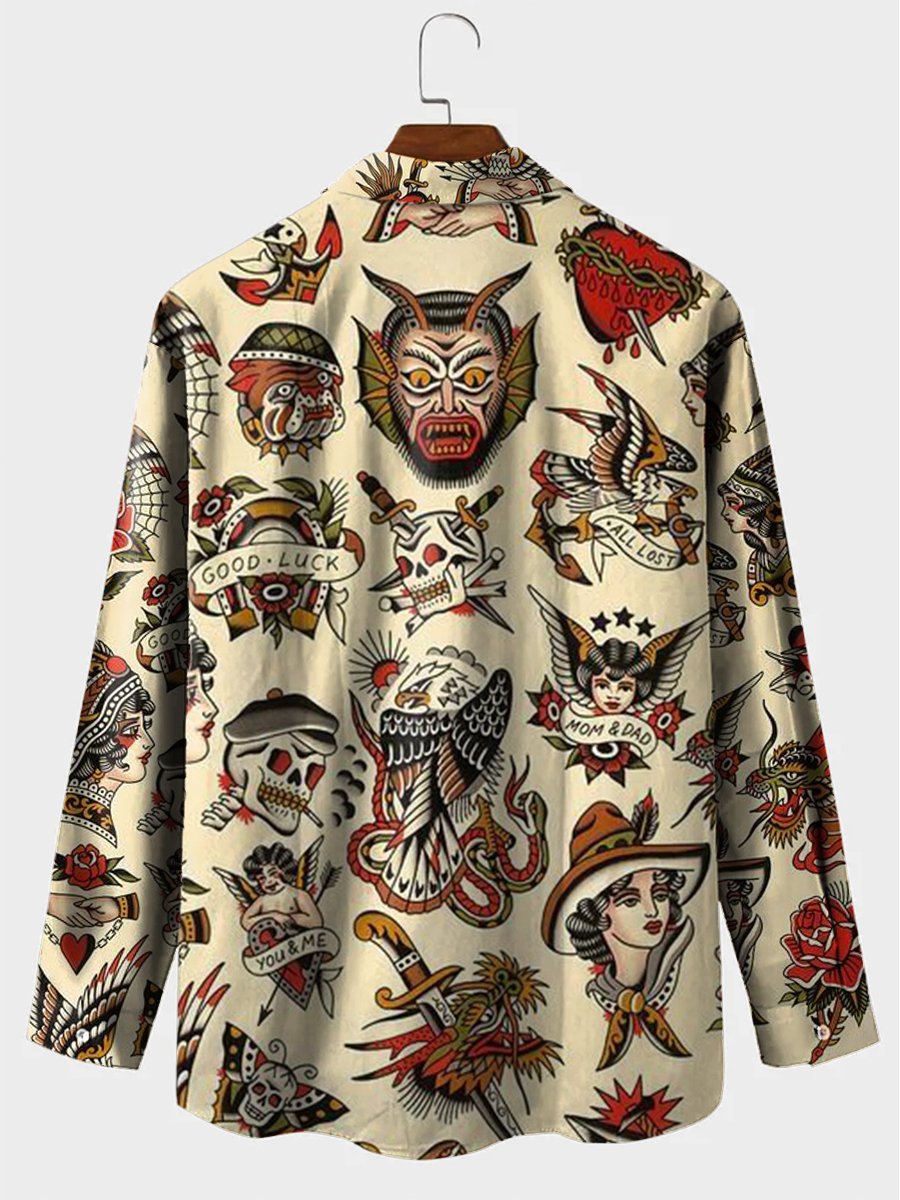 Vintage Animal Items Print Easy Care Long Sleeve Shirts