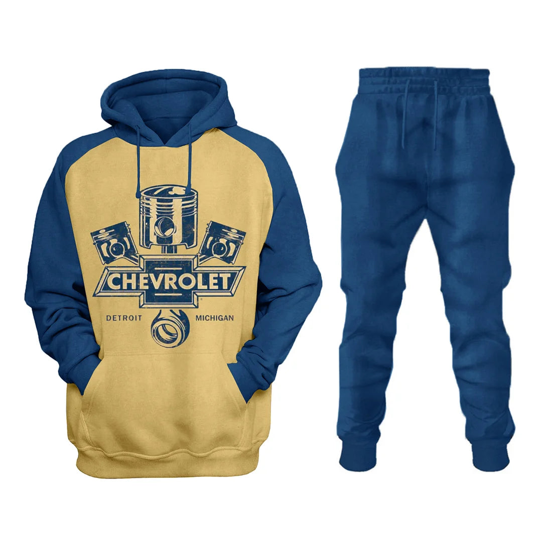 Vintage Motorcycle Engine Distressed Sweatshirt Set