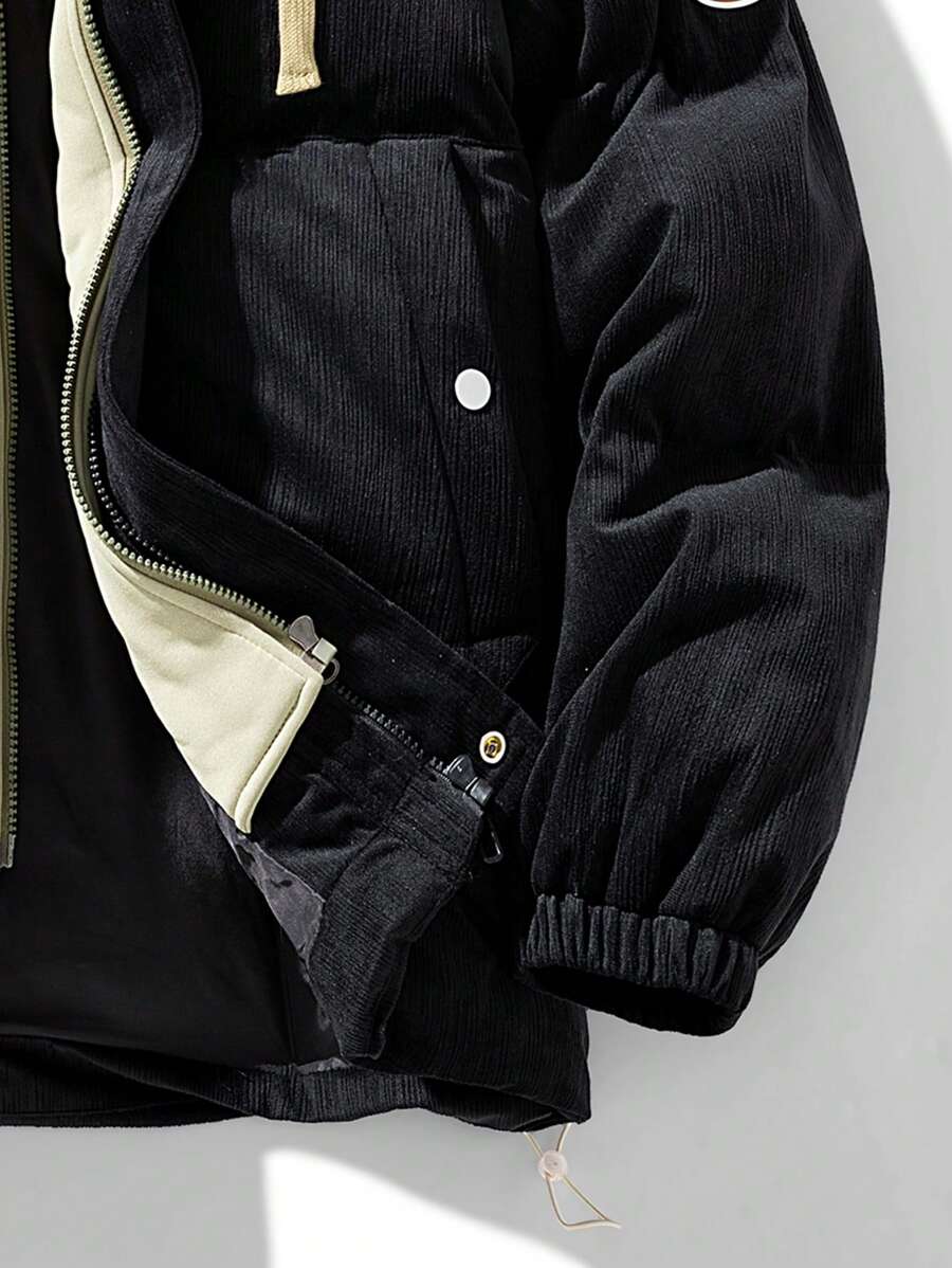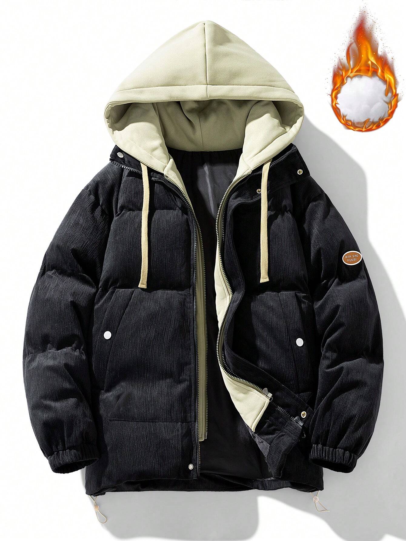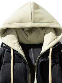 Winter Faux Two-piece Hooded Warm -padded Jacket