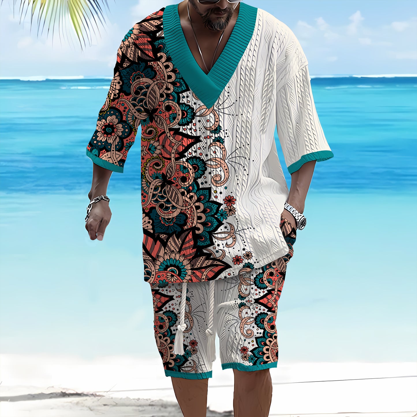 Masculino conjunto Polo casual de férias com estampa floral preto