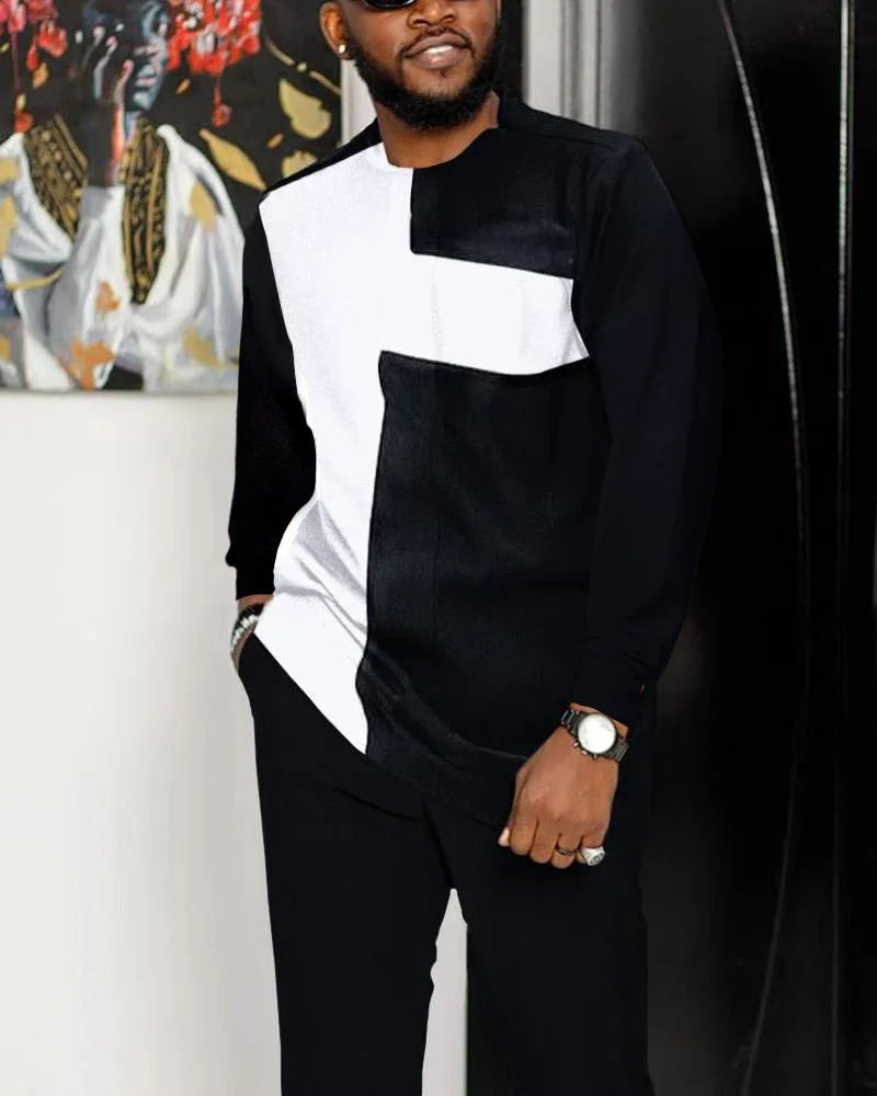 Casual Color Blocking Long Sleeve Walking Suit-014
