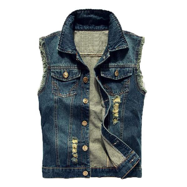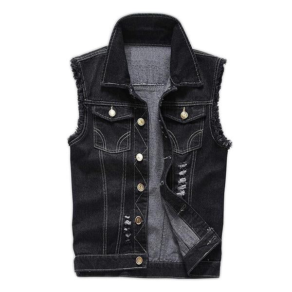 Men’s casual distressed frayed denim vest is crafted from sturdy denim fabric that is durable and soft for all day comfort. These denim fabrics are heavily washed for a vintage style and present a worn-in appearance from day one.