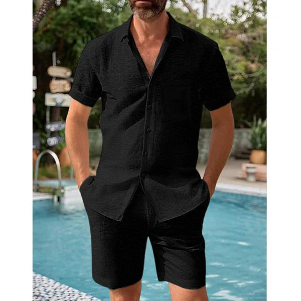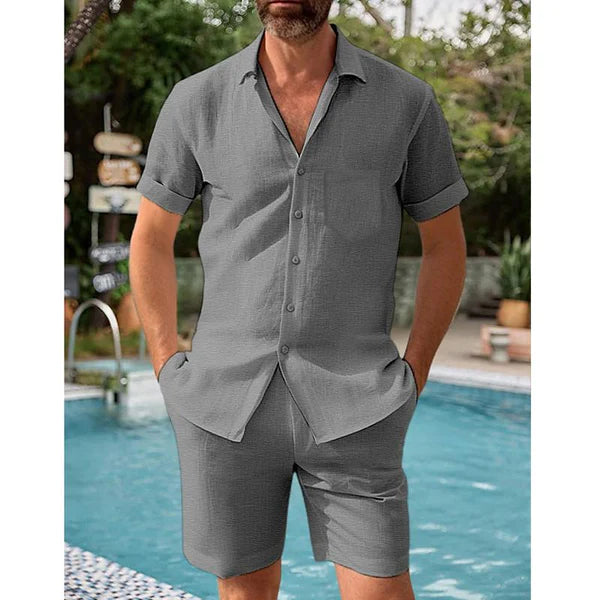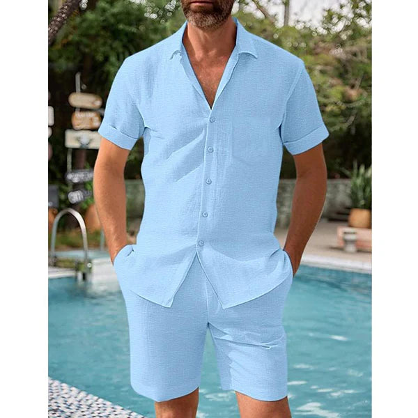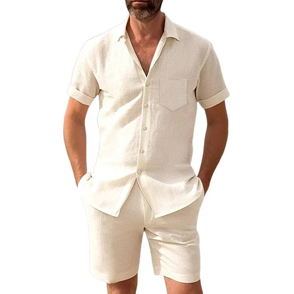 Cotton And Linen Short-Sleeved Shirt And Shorts Set
