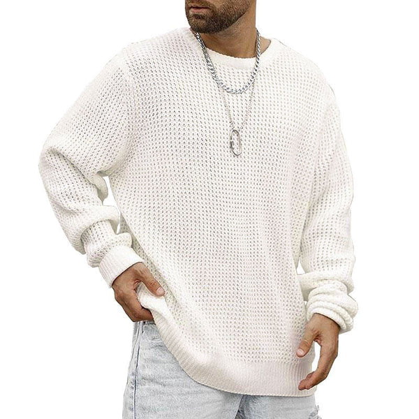 Our men’s long sleeve round neck casual loose pullover sweater features round neck, solid color, loose version and drop shoulder sleeves for a classic style that never goes out of style.