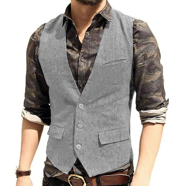 Men's V-Neck Single-Breasted Tweed Vest – the epitome of timeless style and sophistication.