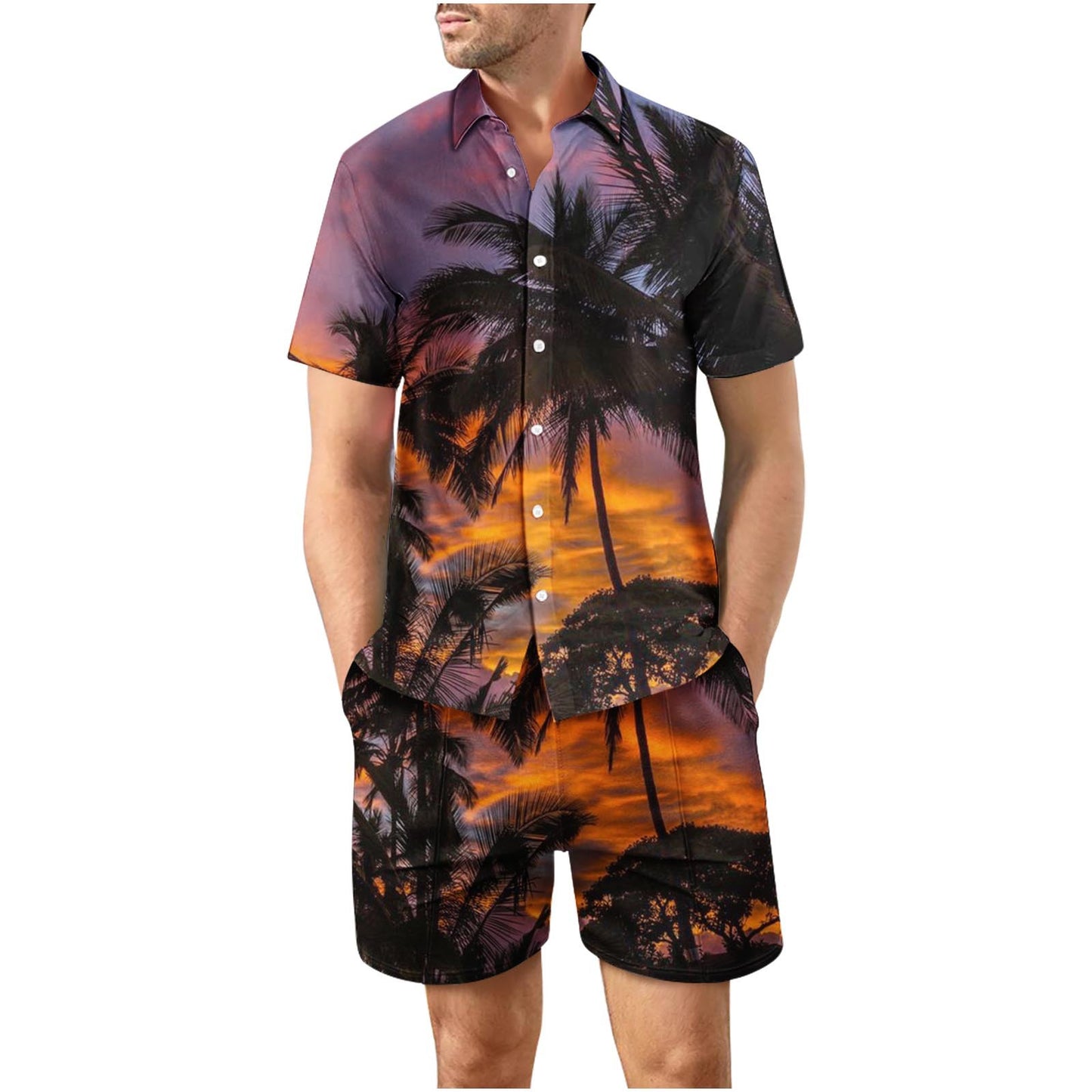 Tropical Sunset 17 Button Up Short Sleeve and Shorts Loose Set
